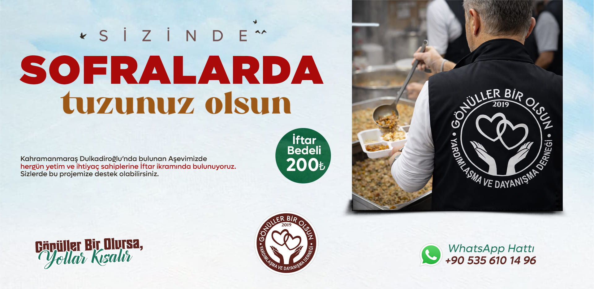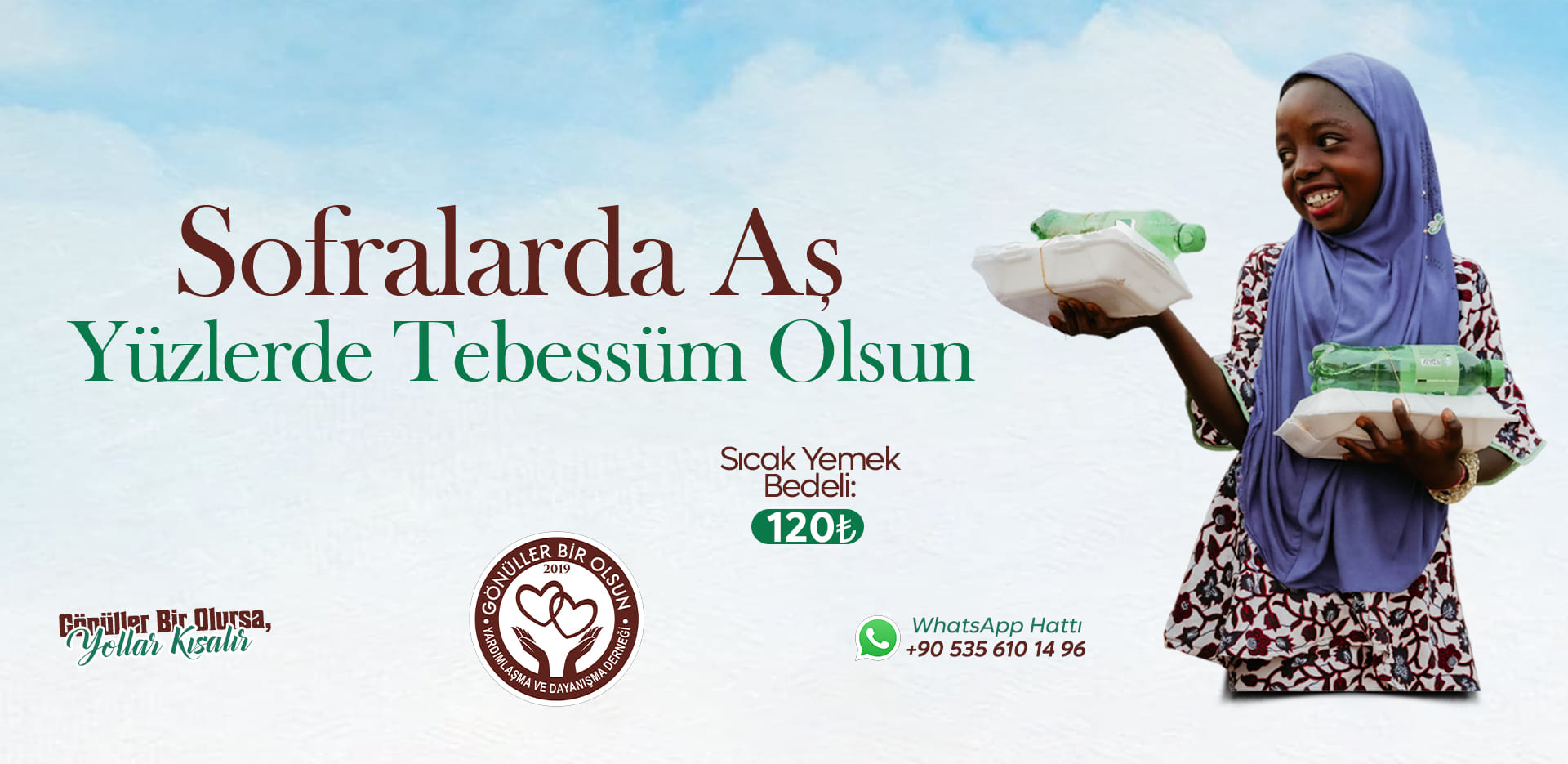 Gönüller Bir Olsun Derneği olarak, hayırseverlerin desteğiyle Afrika’daki ihtiyaç sahiplerine umut, yaşam ve güven ulaştırıyoruz. Temiz suya erişimden gıda yardımlarına, kurban bağışlarından özel gün organizasyonlarına kadar her çalışmamızda insan hayatını merkeze alan çözümler üretiyoruz.
